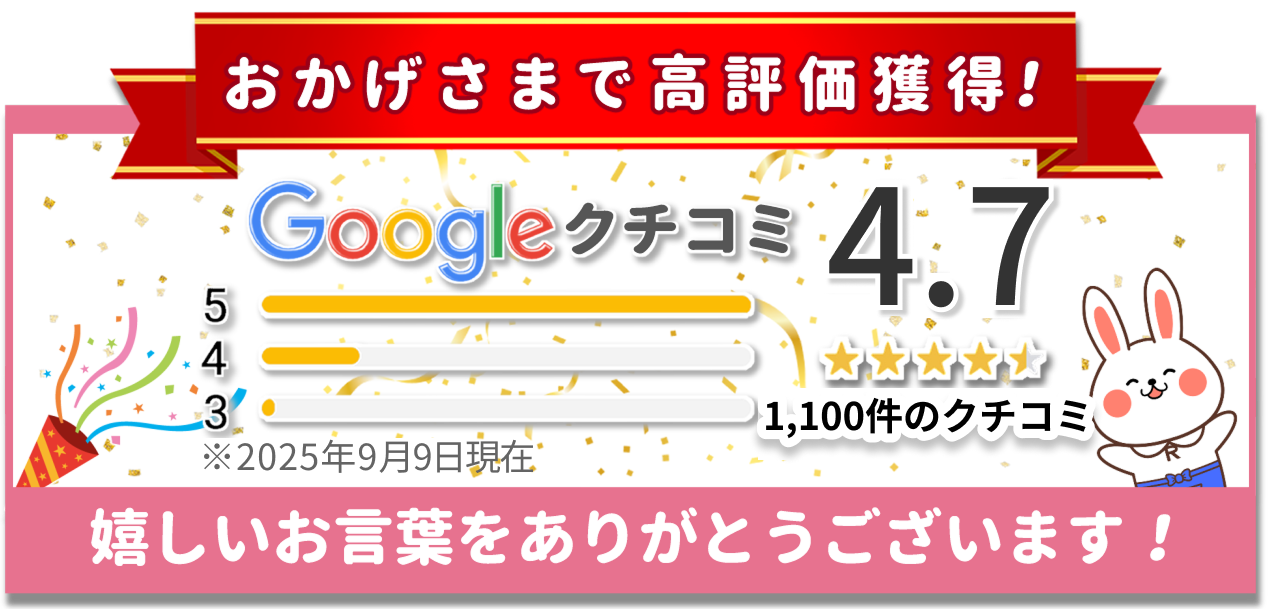 口コミで集客をする事により他社さんのように余計な広告宣伝費をかけていません。