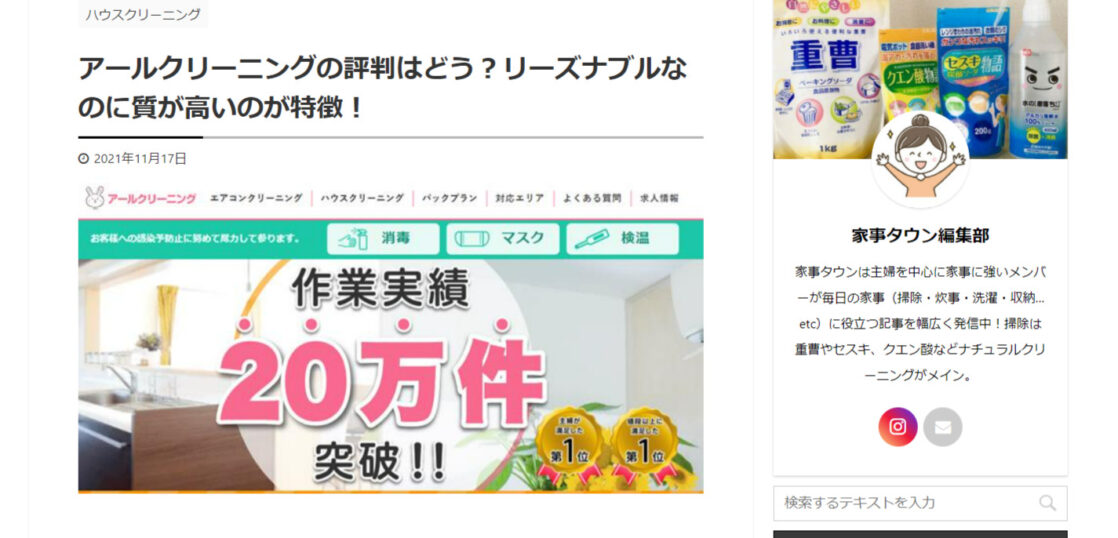 ■アールクリーニングの評判はどう?リーズナブルなのに質が高いのが特徴!(下記URLで家事タウンさんの掲載ページに移動します)